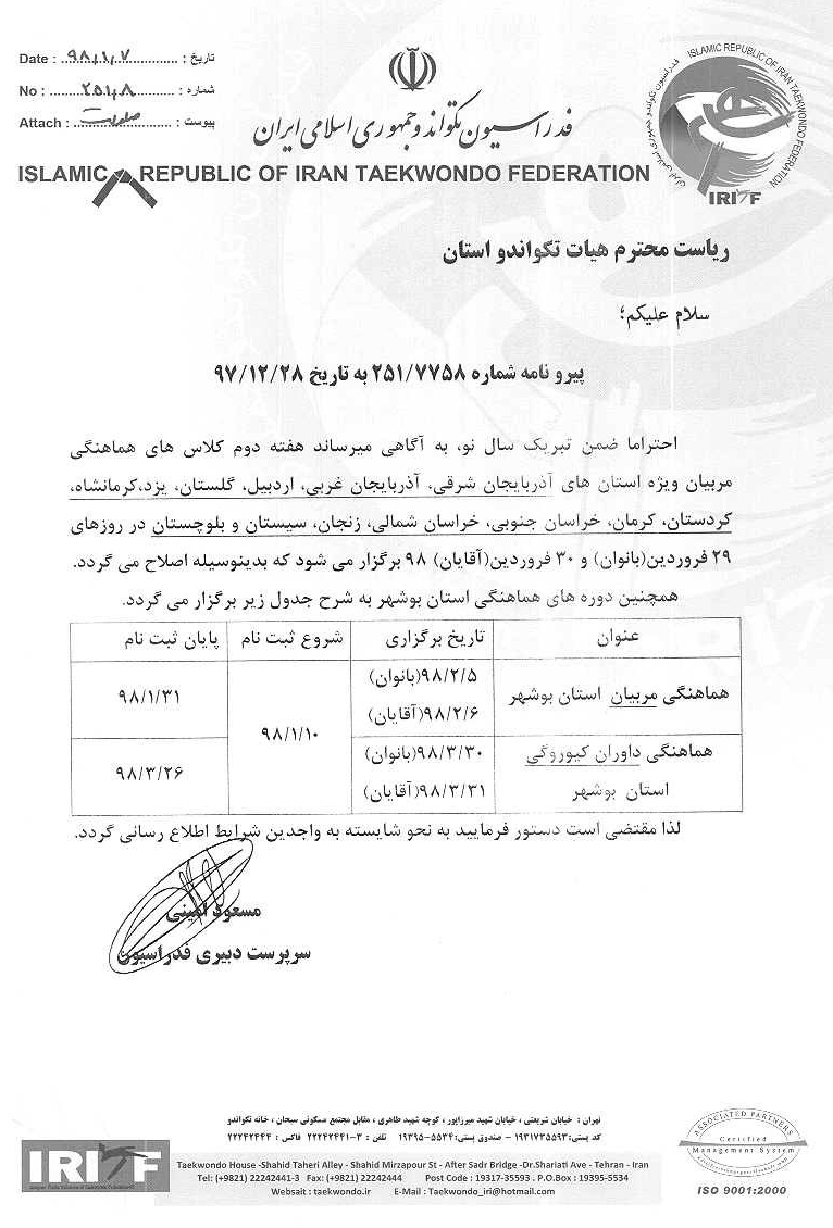 اطلاعیه شماره 251/08 اطلاعیه برگزاری کلاس هماهنگی مربیان