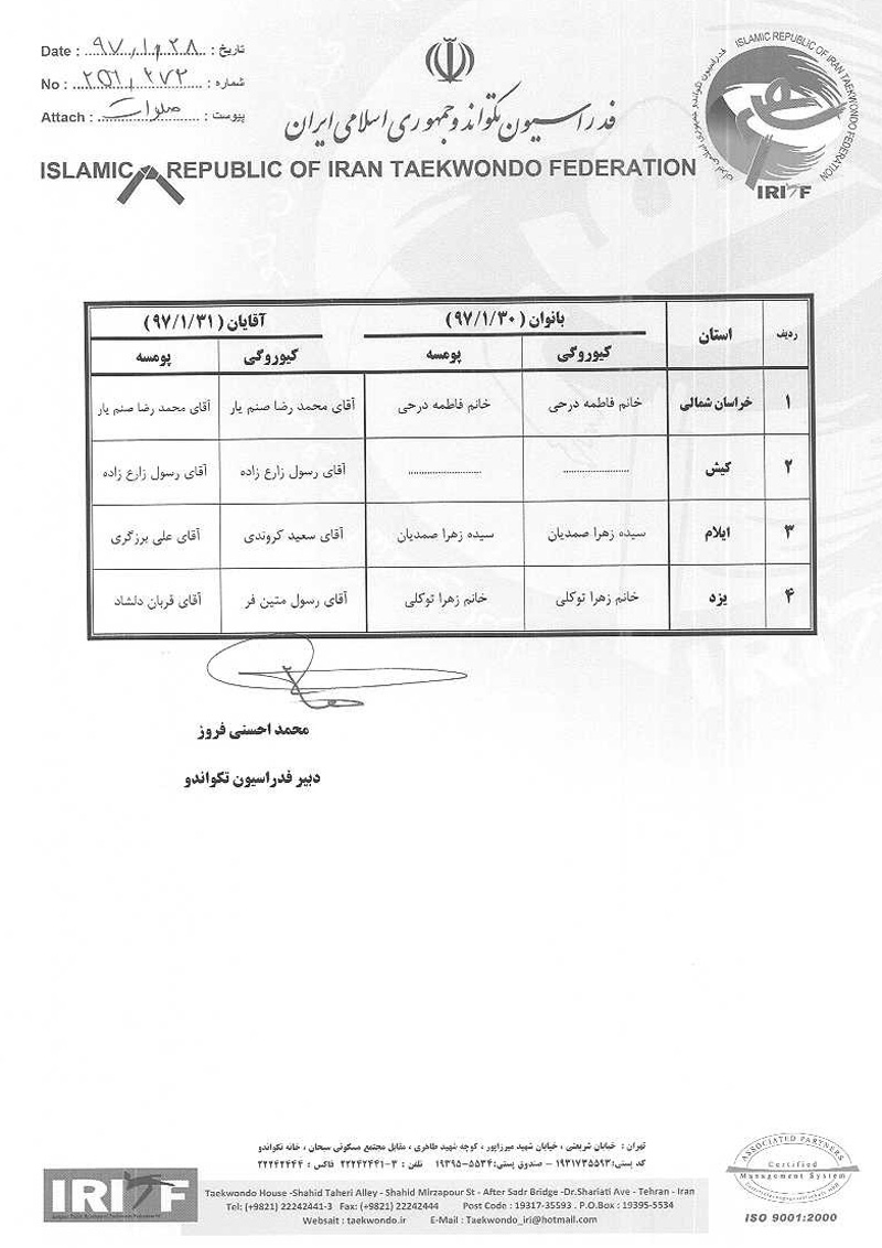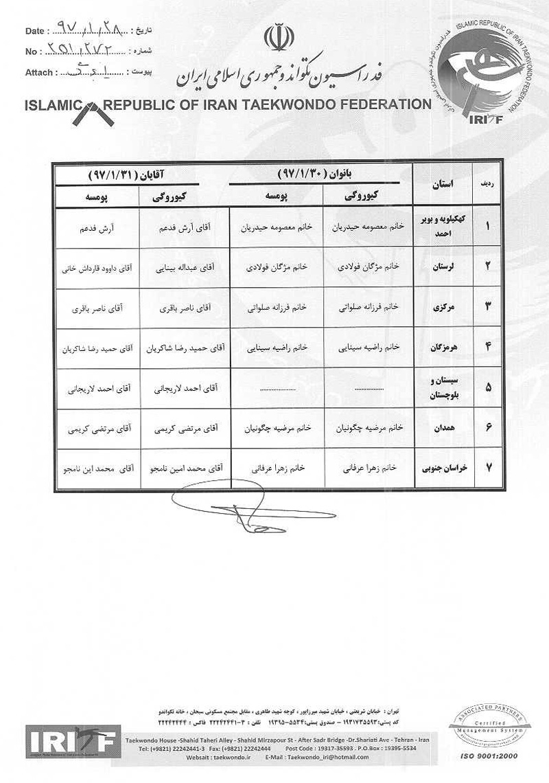 اطلاعیه شماره 251/272 اطلاعیه اسامی مدرسان دوره هماهنگی مربیگری آقایان و بانوان