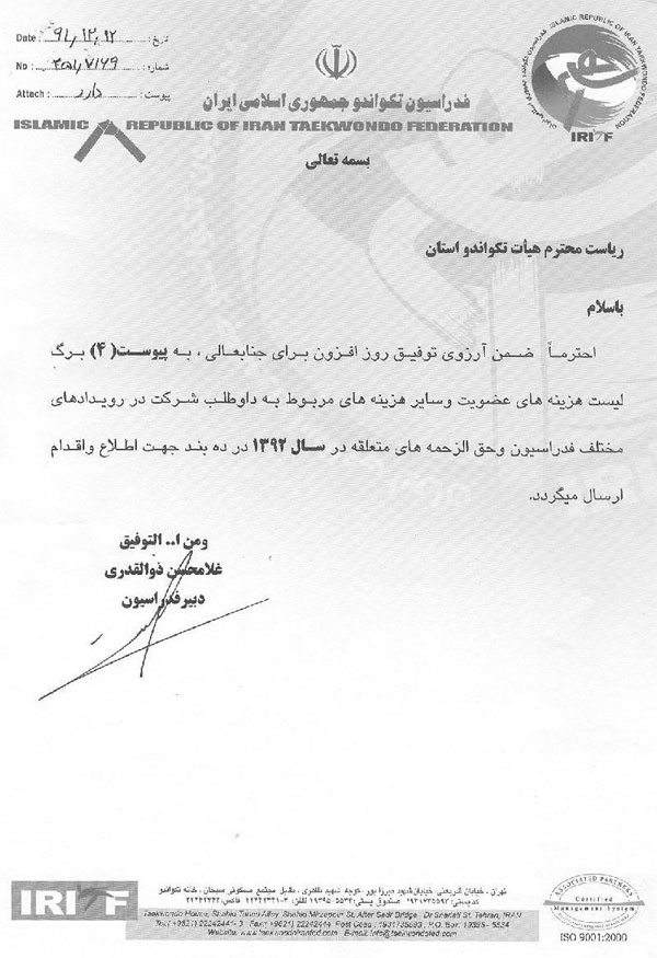 تقدیر رییس فدراسیون جهانی تکواندو از ایران