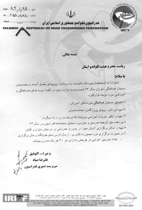 اطلاعیه داوران اطلاعیه سمینار هماهنگی داوران در سال 93