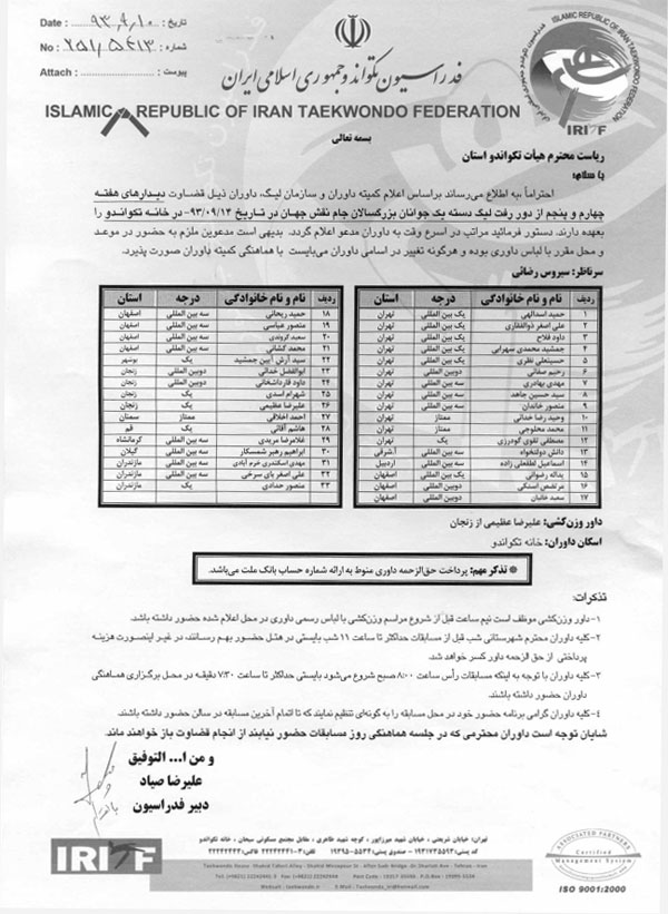 تقدیر رییس فدراسیون جهانی تکواندو از ایران