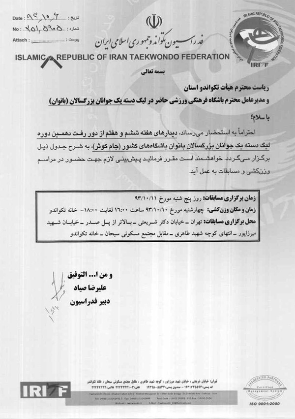 اطلاعیه دور رفت لیگ دسته یک بانوان (جام کوثر)