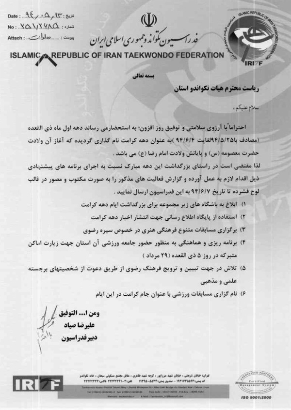 تقدیر رییس فدراسیون جهانی تکواندو از ایران