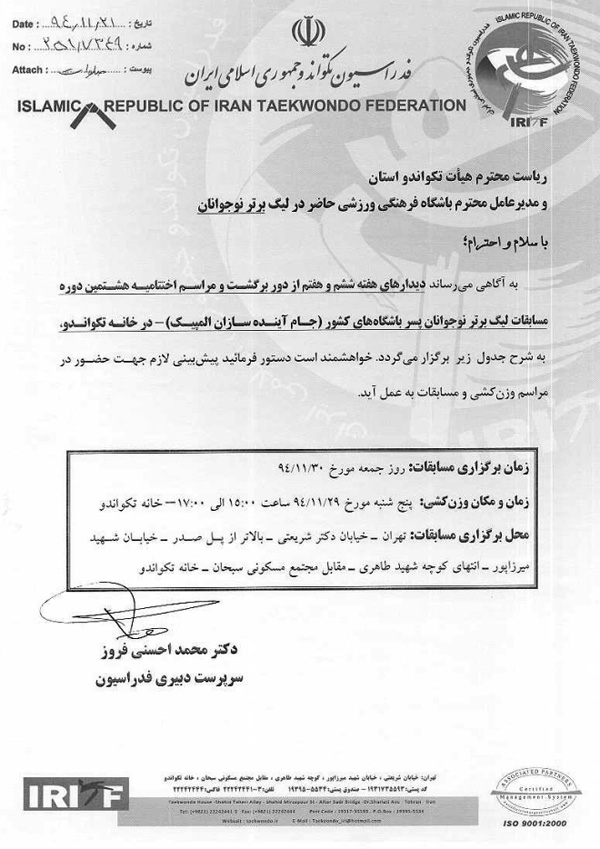 اطلاعیه شماره 7349/251 اطلاعیه لیگ برتر نوجوانان پسر (جام آینده سازان المپیک )