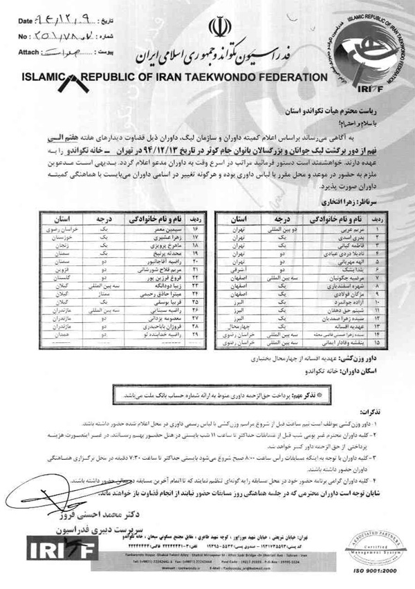 اطلاعیه شماره 7807/251 اطلاعیه دور برگشت لیگ بانوان جام کوثر