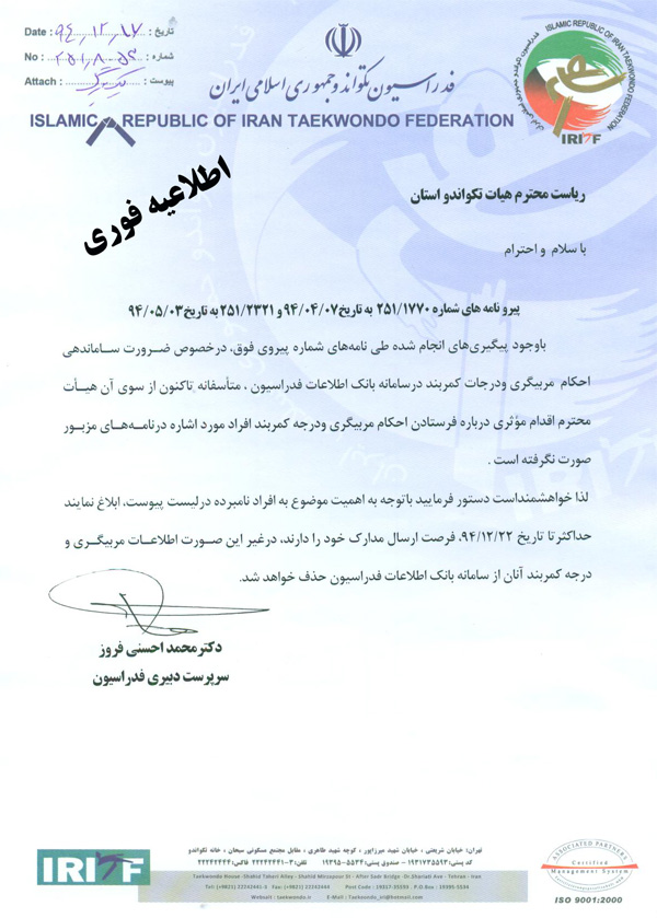 اطلاعیه شماره 8053/251 اطلاعیه آخرین مهلت ساماندهی به احکام مربیگری