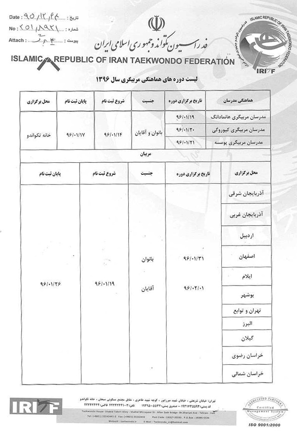 اطلاعیه شماره 251/8921 اطلاعیه دوره های هماهنگی داوران و مربیان در سال 96