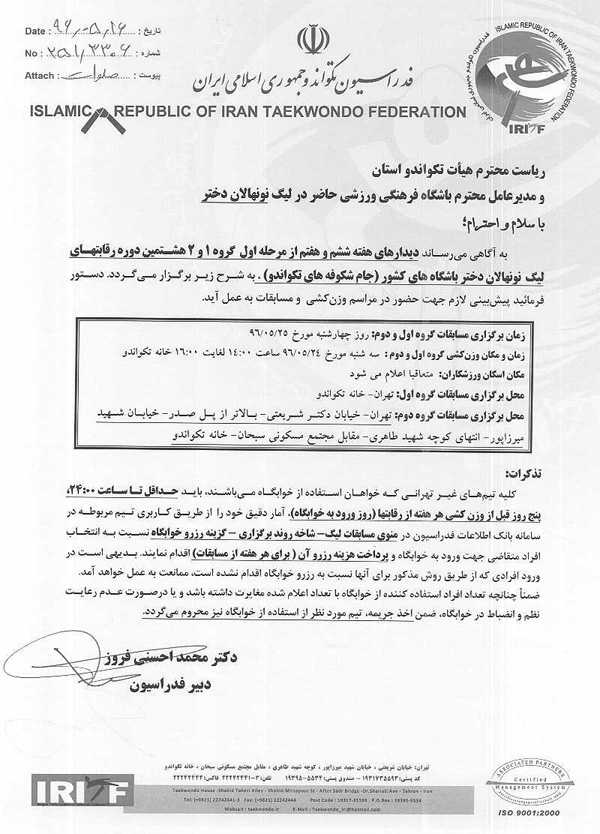 اطلاعیه شماره 251/3306 اطلاعیه لیگ نونهالان دختر جام شکوفه ها