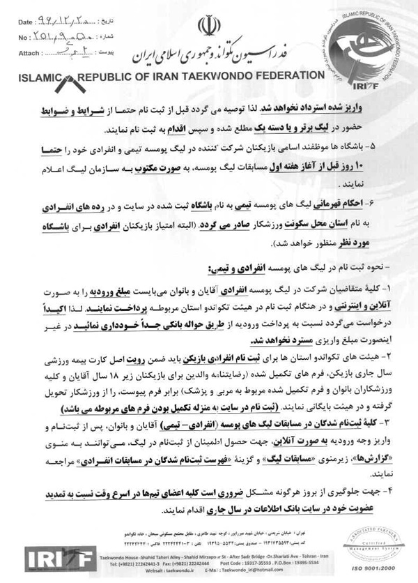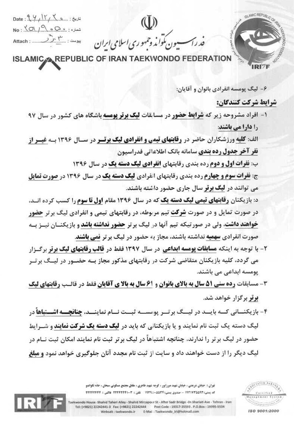 اطلاعیه شماره 251/9050 اطلاعیه اعلام شرایط ثبت نام در رقابتهای لیگ قهرمانی باشگاههای کشور در سال 1397