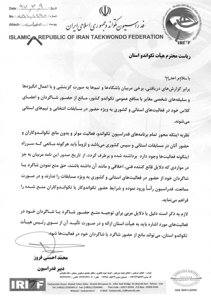 اطلاعیه شماره 251/1290 اطلاعیه گزینش تکواندوکاران توسط مربیان
